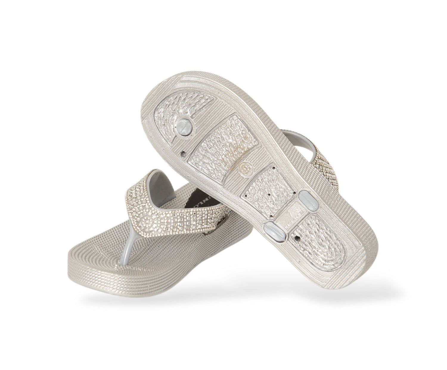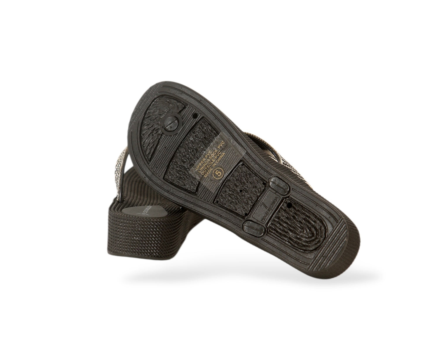 - Footbed: Textured and cushioned for a gentle massaging feel with every step
